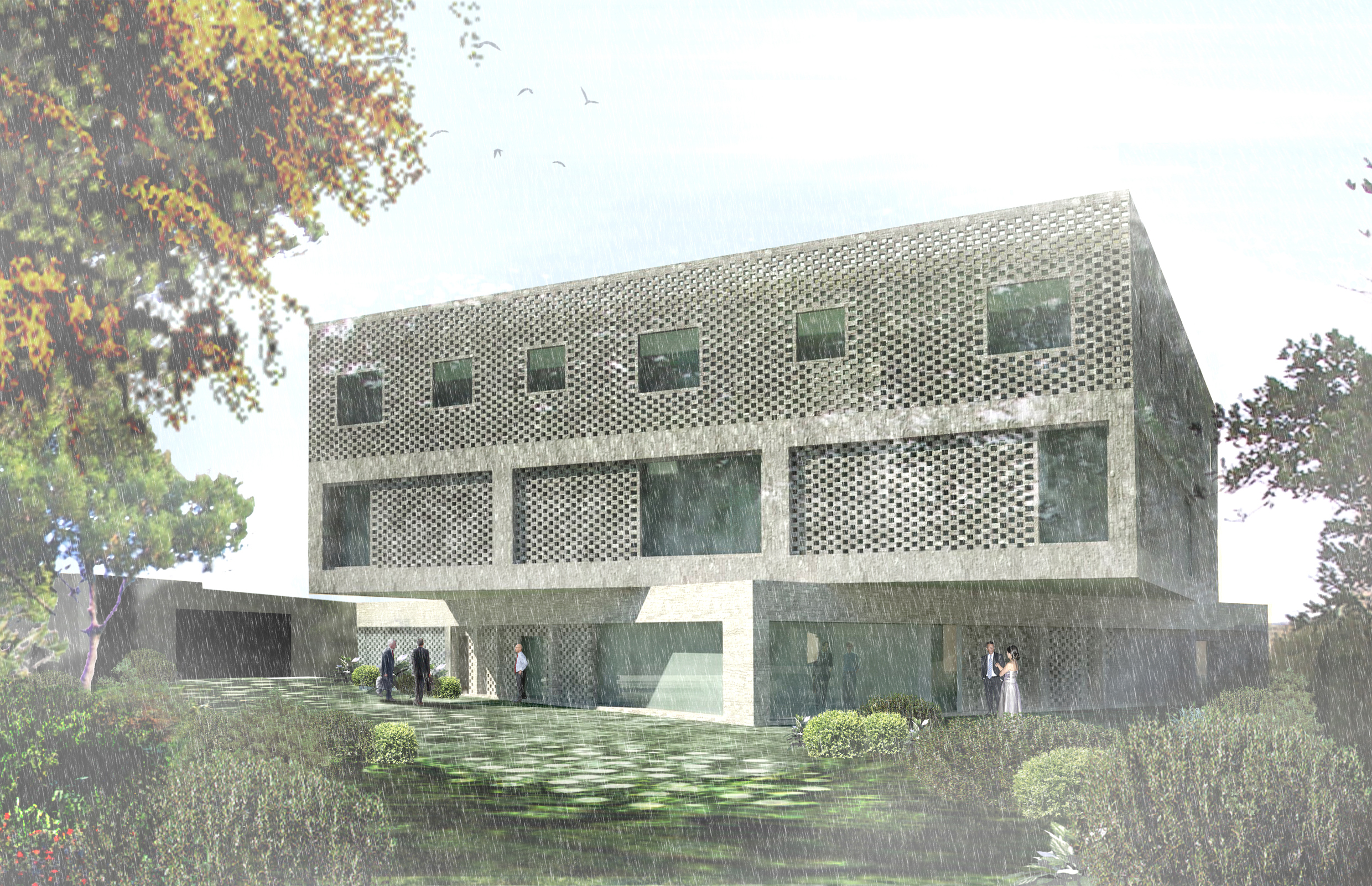 Le projet se base sur l’observation fondamentale que les trois différentes unités fonctionnelles soient positionnées le plus avantageusement dans un volume compact sur le site. Sur la base de cette observation, combinée avec les distances réglementaires et la quantité du programme, naît un volume à trois étages, rappelant la forme d’un cube.